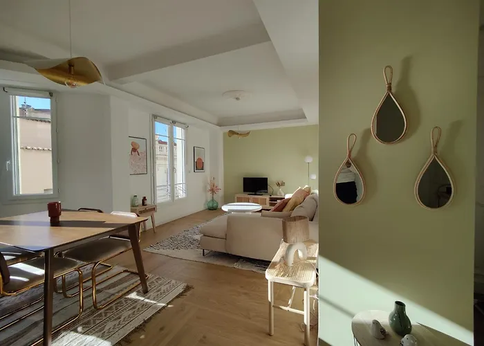 Centre-Ville 2 P Climatise van 52 m^2 is in het centrum van Antibes gesitueerd en biedt uitzicht op de stad. Fietsen en auto's zijn beschikbaar om te huren en de omgeving te verkennen.